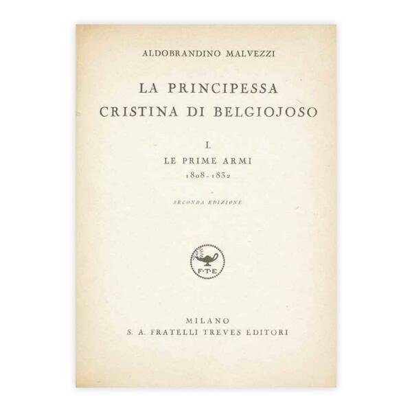 Autore: Aldobrandino Malvezzi Titolo: La Principessa Cristina di Belgiojoso Volume I Le prime armi, 1808-1832 Edizione: 1936, Milano S.A. Fratelli Treves editori - Seconda edizione Dimensioni: 20 x 15 cm , Pagine: 394 Copertina rigida Buone condizioni
