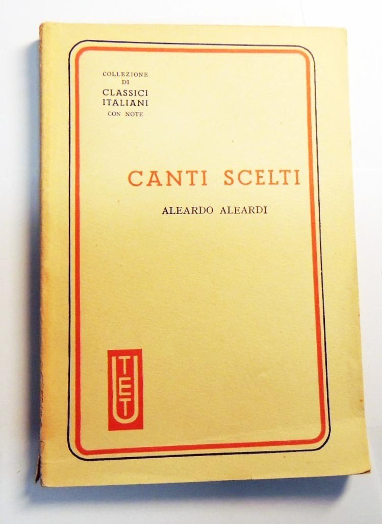 Aleardo Aleardi, Canti scelti, a cura di Luigi Grilli, Unione tipografico-editrice torinese, Torino 1944, pp. 248, cm 17, br. ed. Collana Collezione di classici italiani con note, n. 12. Lievi tracce d’uso alla brossura, uno strappetto senza mancanze al dorso, per il resto buon esemplare.