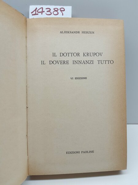 Aleksandr Herzen Il dottor Krupov il dovere innanzitutto 6° ed. Paoline 1963