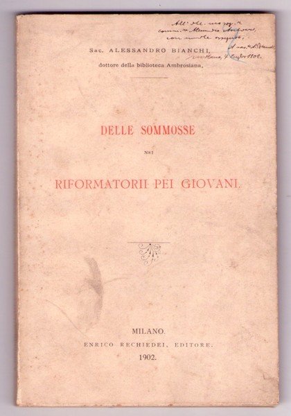 *ALESSANDRO BIANCHI. Delle sommosse nei riformatori pei giovani. 1902