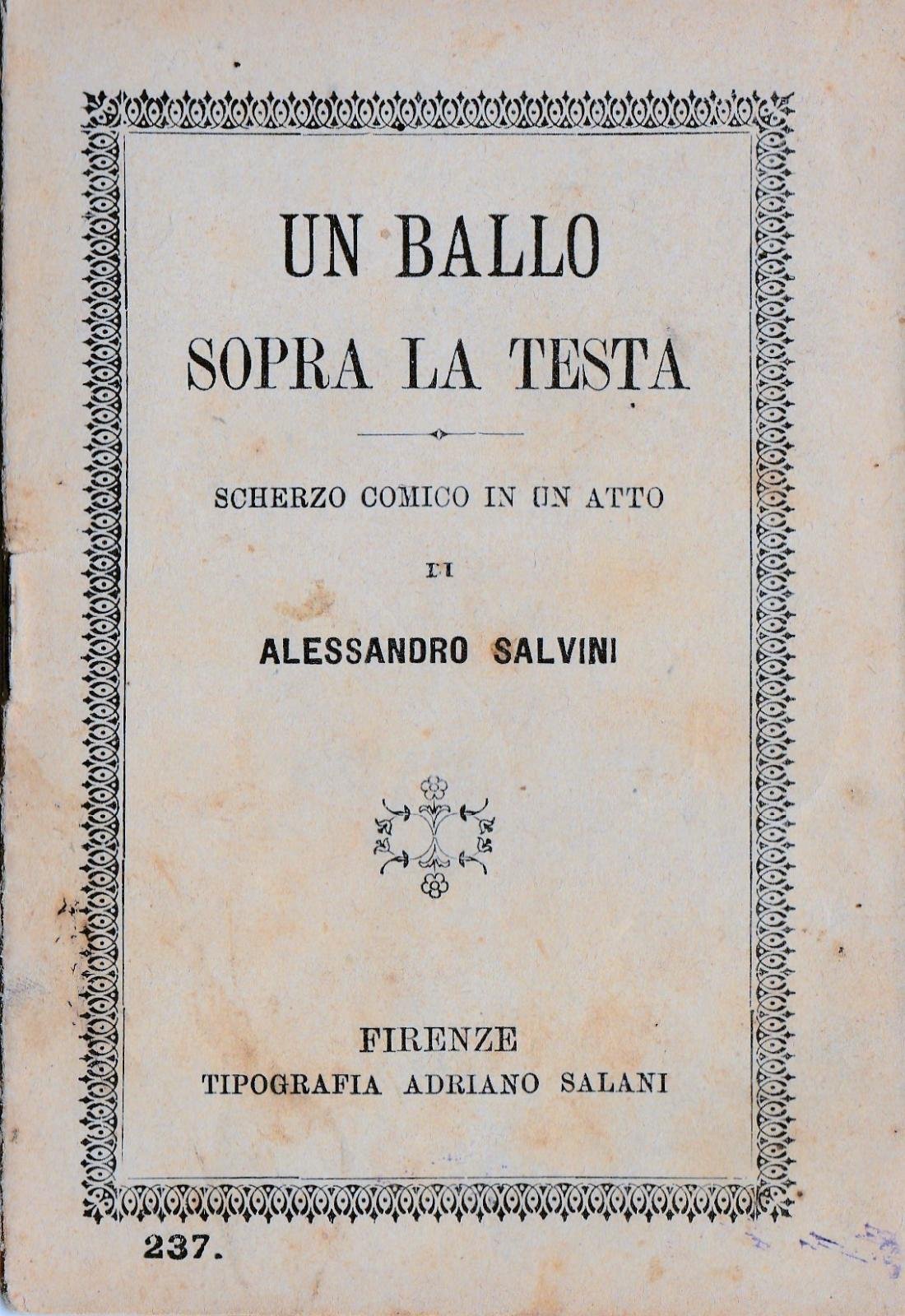 ALESSANDRO SALVINI-UN BALLO SOPRA LA TESTA FIRENZE SALANI 1907-L4248 COPERTINA MORBIDA EDITORIALE CON MACCHIE, INTERNO IN BUONO STATO, QUALCHE FIORITURA INTERNA N. PAG. 22 CM. 14 X 9,5