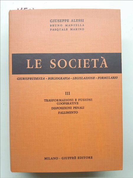 Alessi Manzella Marino Le societ‡ III trasformazioni e fusioni cooperative . GiuffrË 1976