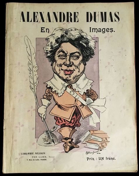 In 4°; 36 pp. Brossura editoriale illustrata. Qualche lieve strappetto al dorso senza perdita di carta. Allinterno esemplare in buone-ottime condizioni di conservazione. Monografia completamente dedicata alliconografia del grande scrittore e drammaturgo francese, Alexandre Dumas padre (Villers-Cotterêts, 24 luglio 1802 Puys, località di Dieppe, 5 dicembre 1870), famoso soprattutto per i capolavori Il conte di Montecristo e la trilogia dei moschettieri formata da I tre moschettieri, da Vent'anni dopo e da Il visconte di Bragelonne. Il volume raccoglie ritratti di Dumas opera di Leon Noel, Deveria, Girard, Maurin, Clopet, Cham, Telory, Adam, Carjat, Mailly, Gripp, Nadar, Michelet ed altri partendo dalla giovinezza per arrivare alla senilità del celebre scrittore. Opera non comune.