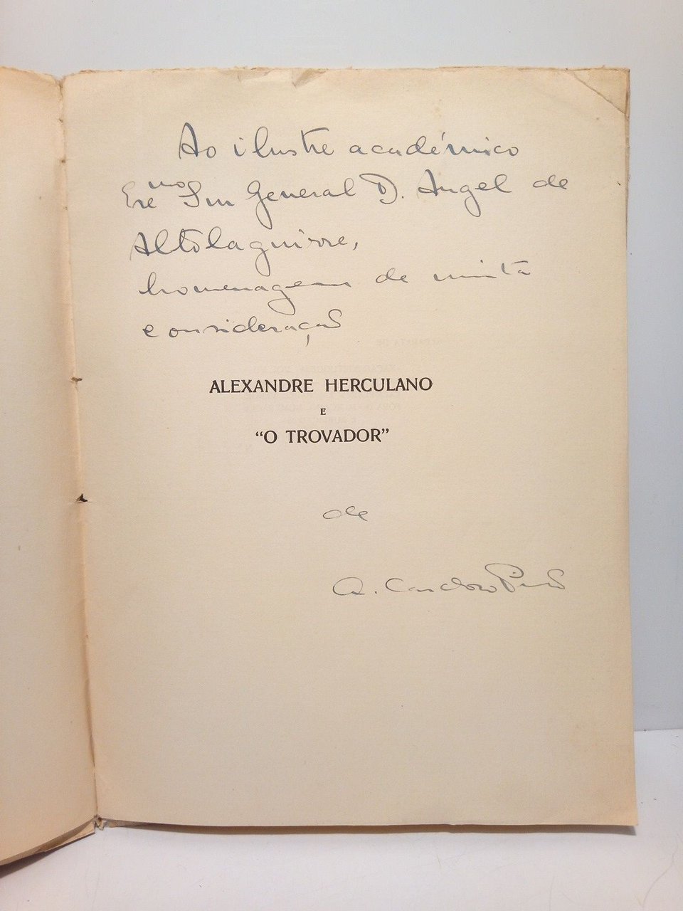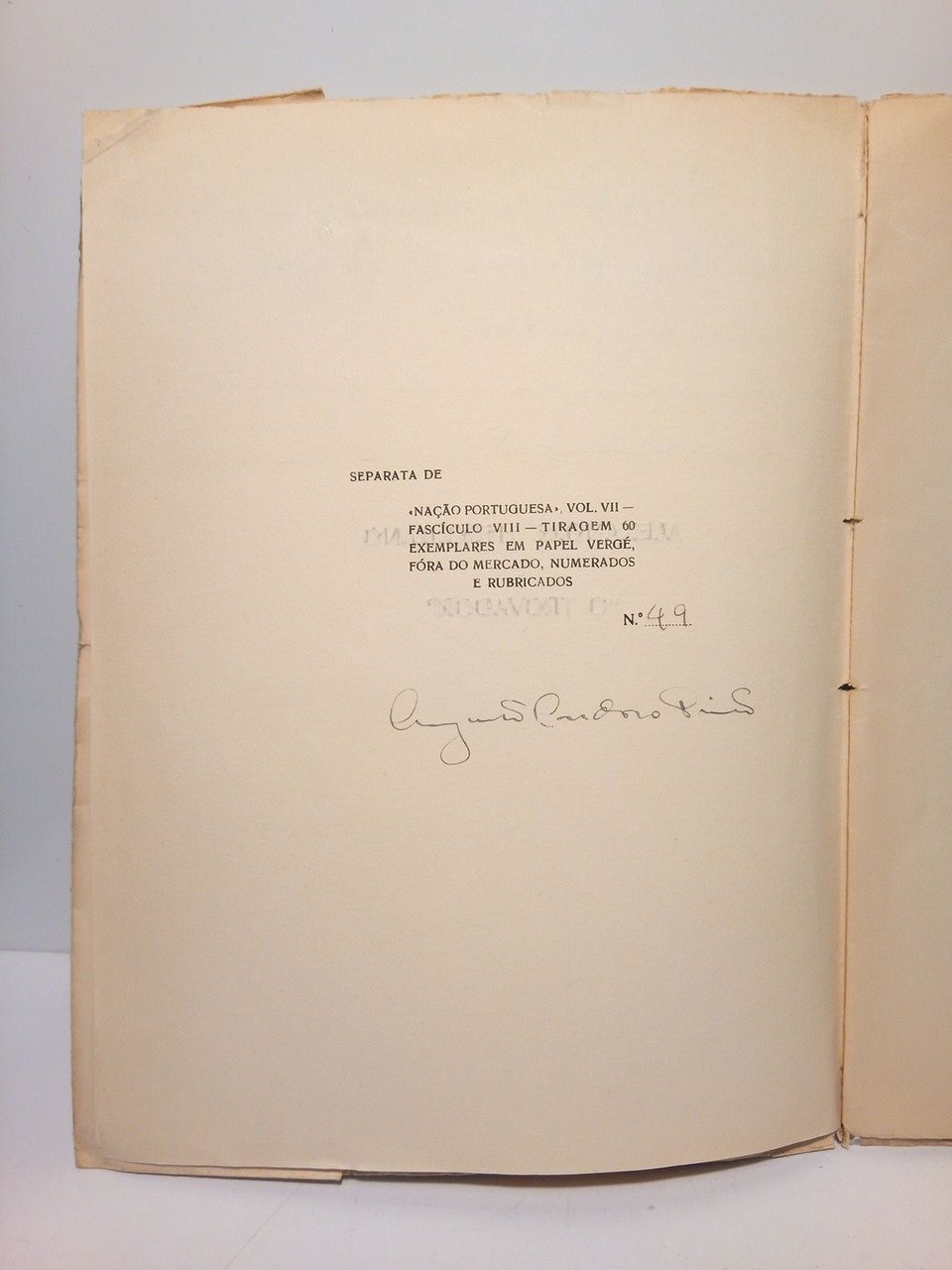 Lisboa: [Naçao Portuguesa], 1933.- 12 p.; 4º mayor (26,8 x 20 cm) ; Texto en portigués; Rústica Ed. con solapas.- (Sep. de "Naçao Portuguesa". Vol. 7., Fasc. 8).- Tirada de 60 ejemplares numerados en papel vergé, no venales y firmados por el autor.- RARO.* Dedicatoria autógrafa A. Cardoso a Don Angel de Altolaguirre. Las cubiertas algo fatigadas por los bordes y esquinas. La portadilla tiene reparada su esquina superior externa. Por los demás en buen estado. PORTUGAL
