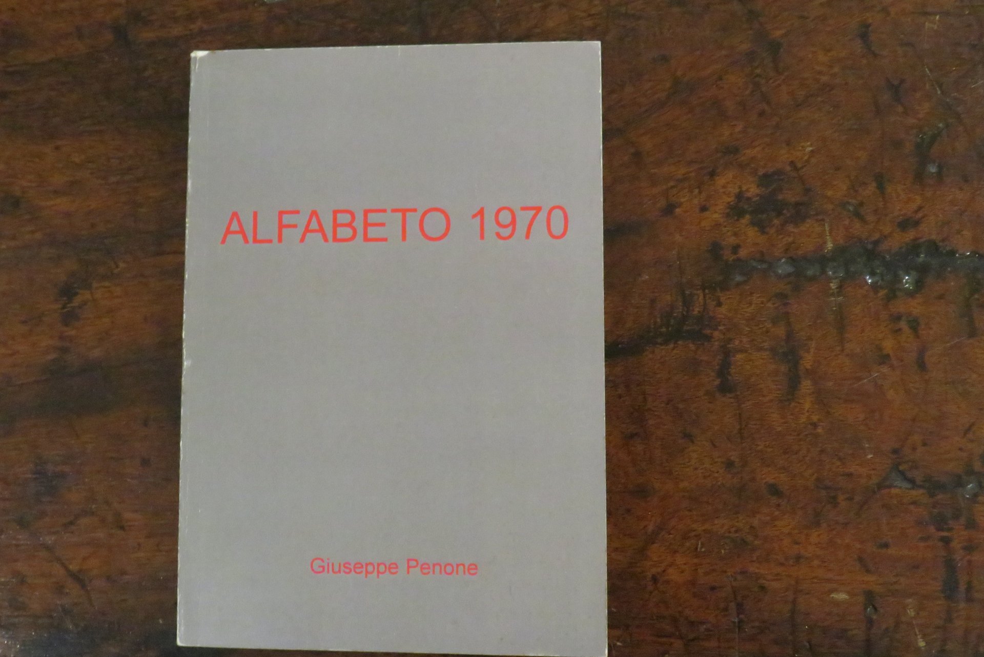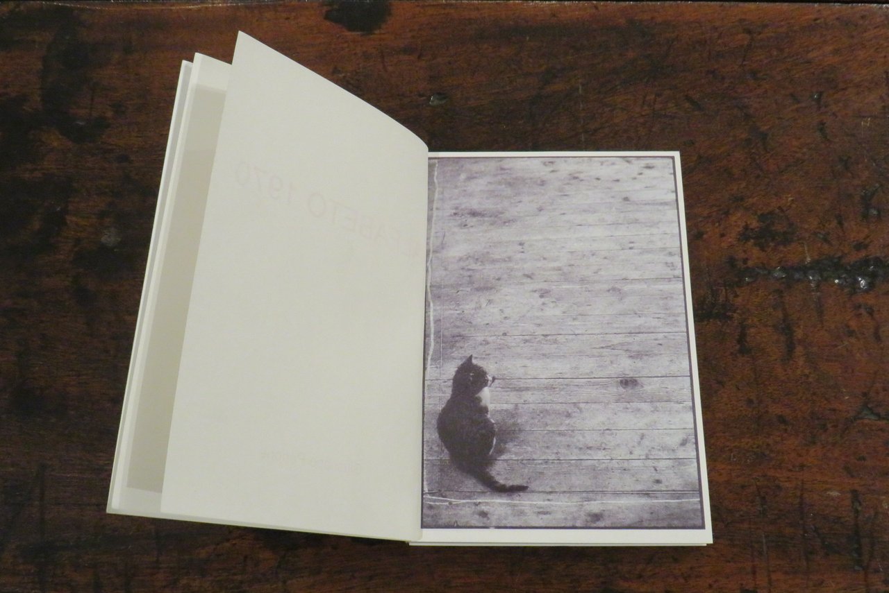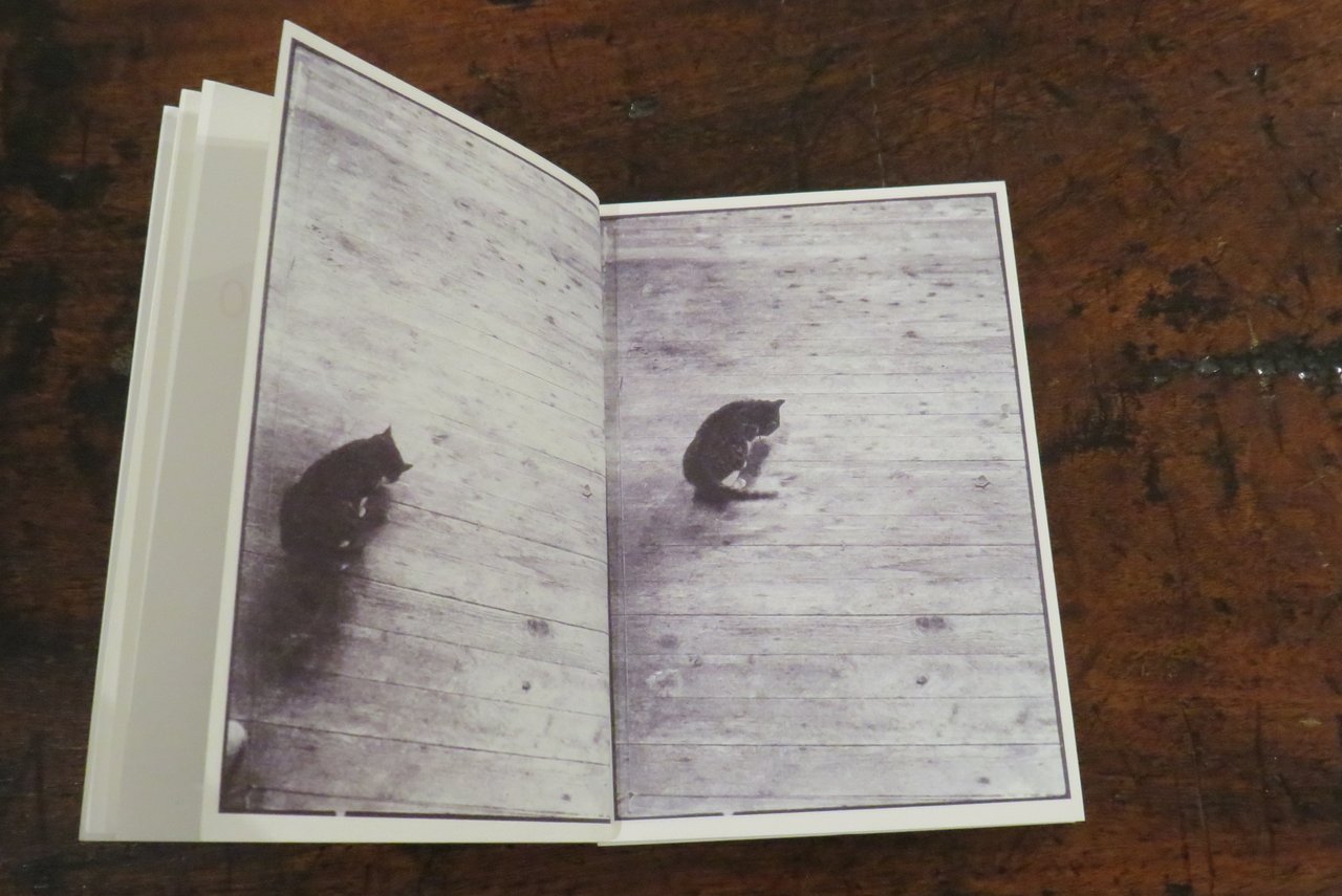 Parigi, Bookstorming, 2003. In -16 (mm. 130x180,5), pp. 174 non numerate, con numerose fotografie in bianco e nero, realizzate dall’artista nel 1970. Le fotografie riproducono un gatto che, ripreso in diverse pose e scatti, cammina "scrivendo" le lettere dell’alfabeto. "E’ del 70 questo lavoro fotografico che documenta l’azione di un gatto mentre scrive". Brossura editoriale, con titolo e autore stampato in rosso al piatto anteriore e al dorso. Tiratura di 200 esemplari. Monografia dell’artista torinese Giuseppe Penone, esponente dell’Arte Povera. Libro d’artista. Ottimo. Raro.