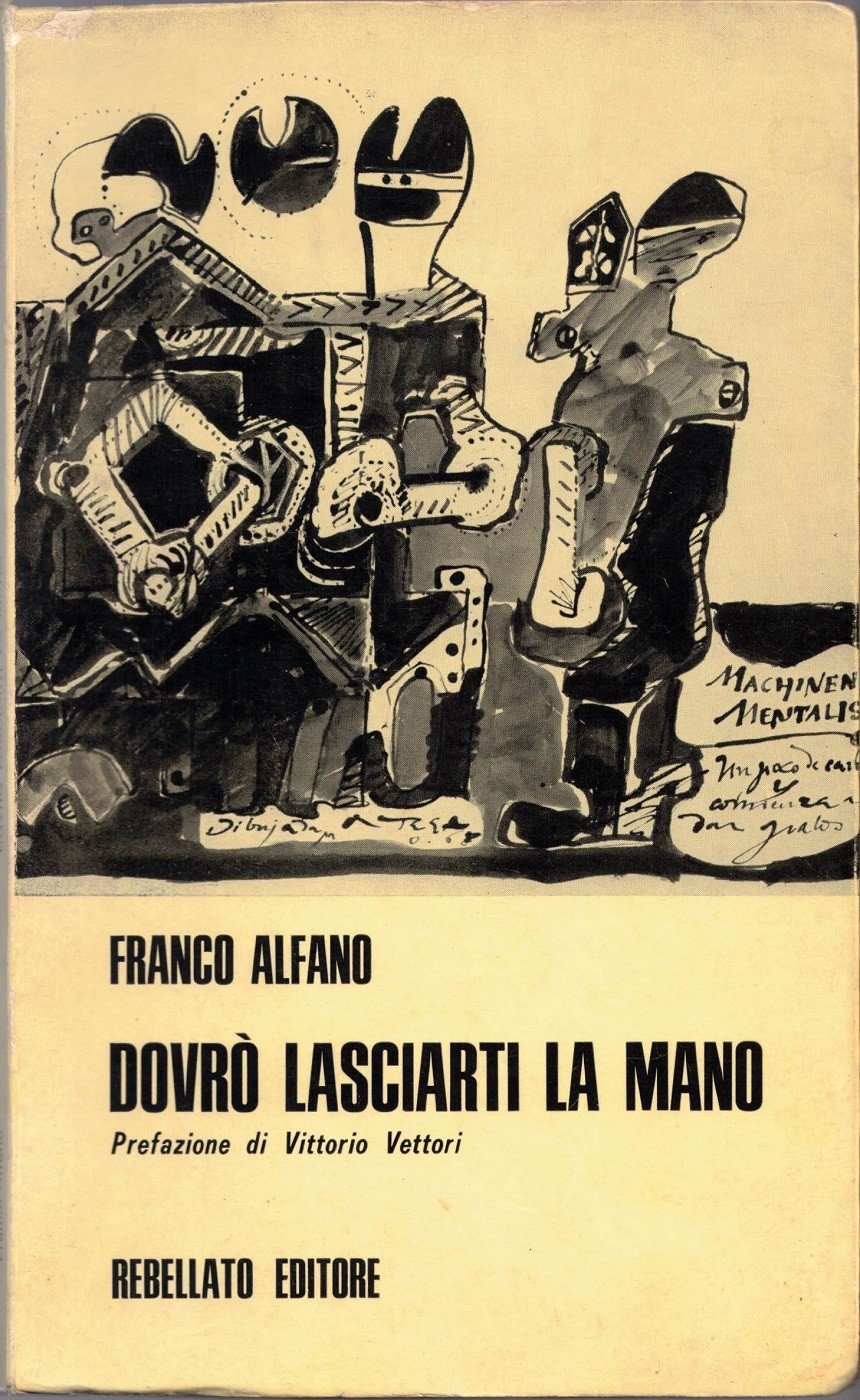 Franco Alfano, Dovrò lasciarti la mano, prefazione di Vittorio Vettori, Rebellato Editore, Padova 1970, pp. 78, cm 20, br. ed. con alette. Collana Poeti. Leggere tracce d’uso alla brossura, una piccolissima abrasione a margine della prima di copertina, lieve brunitura della carta, per il resto esemplare ben conservato.