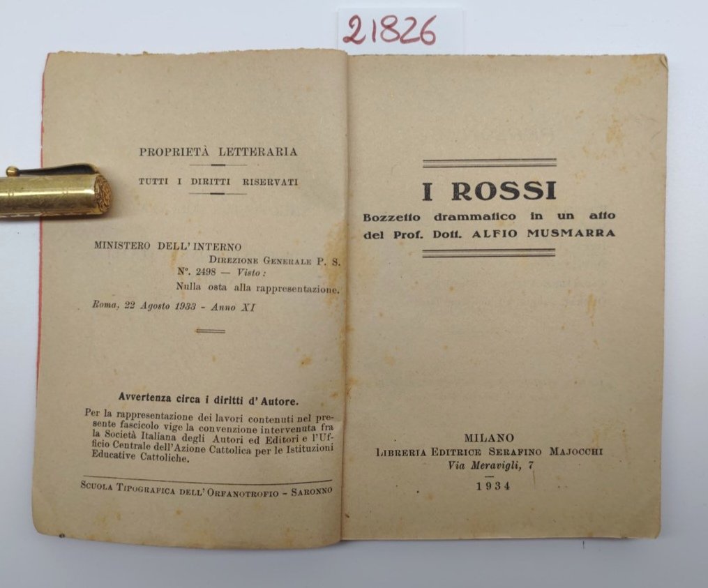 Alfio Musmarra I Rossi Carlo Giacomo Boisio Il numero 13 Majocchi 1934