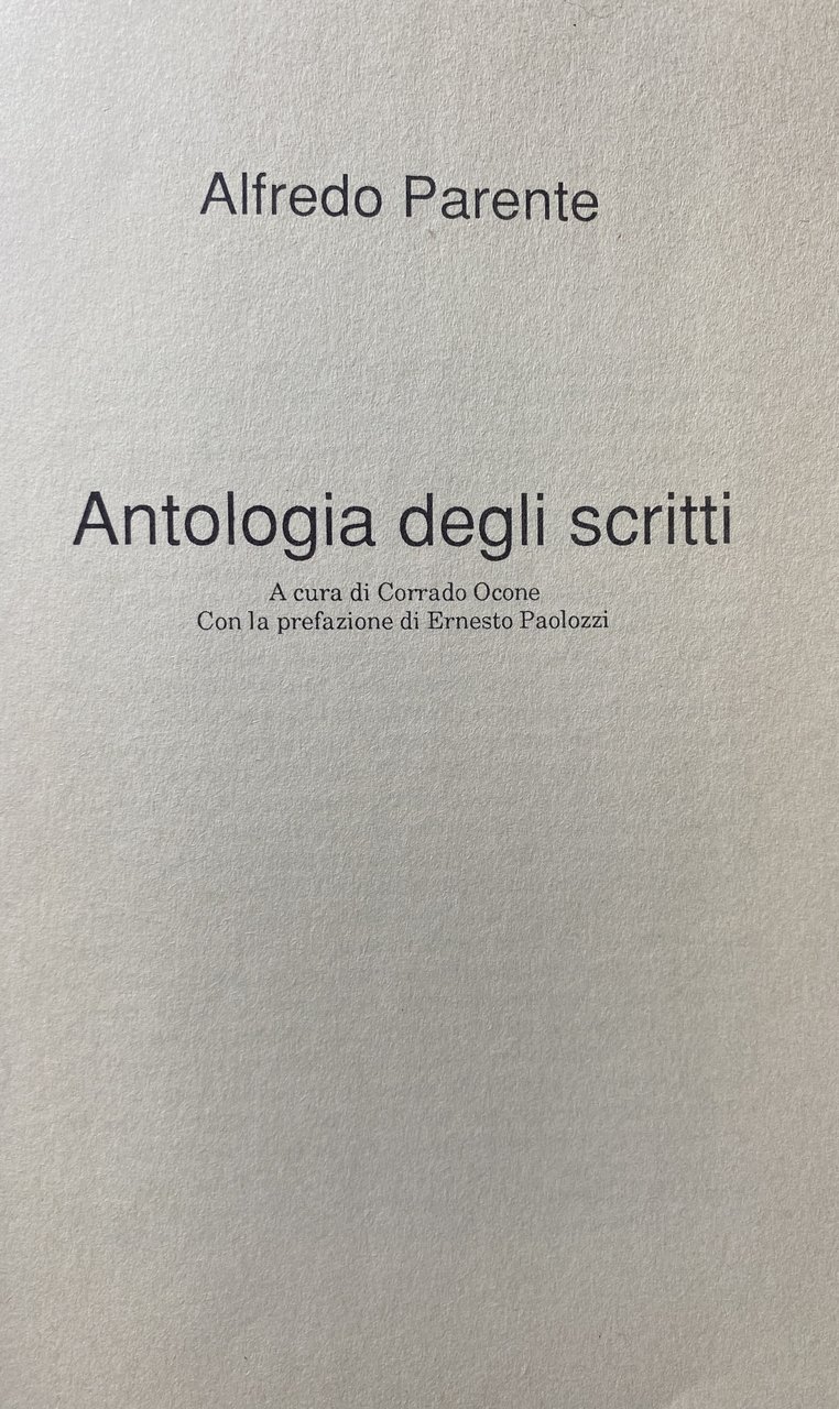 ALFREDO PARENTE: ANTOLOGIA DEGLI SCRITTI