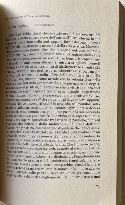 Soggetti: Liberalismo, Filosofia, Novecento, Etica, Antologie, Raccolte di scritti, Italia, Cultura, Pensiero liberale, Destra, Sinistra, Politica, Ideologia, Intellettuali, Critica, Crisi, Valori borghesi, Carlo Antoni, Utile, Ermeneutica, Logica, Metafisica, Intuizione, Panlogismo, Bellezza, Bach, Ispirazione, Poetica, Catarsi, Artista, Desiderio, Eros, Contemplazione artistica, Melodia, Aristotele, Astrattismo, Vittorio Stella, Hegel, Mozart, Metrica, Futurismo, Pittura, Arti figurative, Purezza, Perfezione, Unità, Universalità, Suono, Liricità, Cosmicità, Ariosto, Orlando furioso, Armonia cosmica, Sublime, Negatività, Poesia, Malinconia, Religione, Religioso, Dolore, Ispirazione, Virilità, David, Michelangelo, Ritmo, Equilibrio, Ottimismo, Opposti, Passione, Sentimenti, Drammaturgia, Volontà, Totalità, Oggettivismo, Teorie estetiche, Von Humboldt, Hermann und Dorothea, W.H. Wackenroder, Adelchi Attisani, Pessimismo, Rappresentanza, Benedetto Croce, Estetica Crociana, Castità, Musica, Oggettivismo, Azione, Vitalismo, Vitalità, Isaiah Berlin, Saggi, Rivolta, Borghesia, Vittorio Stella, Spirito, Giuseppe Galasso, Antifascismo, Marxismo, Guido M. Gatti, Santo Coppolino, Arti, Pensiero crociano, Crocianesimo, Luigi Einaudi, Pensatori liberali, Concezione gentiliana, Stato etico, Filosofi napoletani, Morale, Libertà, Lotta, Socialismo riformista, Società, Classe operaia, Dialettica sociale, Progresso, Impegno civile, Distinzione, Comunismo, Creatività, Capitalismo, Ricchezza, Spiritualismo, Materialismo, Luigi Ronga, Guido Pannain, La Scala, Teatro San Carlo, Maggio Musicale Fiorentino, John Stuart Mill, Bibliografia ragionata, Natura, Storia, Storicismo, Musicologia, Concetto, Il Triregno, Adolfo Omodeo, Artistica, Beethoven, Categorie, Conoscenza, Opera, Fascismo, Ferruccio DE LORENZO, Fichte, Forme, Francesco Flora, Funzione, Giudizio, Hegel, Herbart, Ideale, Immagini, Interpretazione, Kant, Libertà, Lirica, Logica, Luigi Ronga, Lumi sparsi, Mario Stefanile, Massimo Mila, Metafisica, Musicologia, Palazzo Filomarino, Poesia, Polemica, Pratica, Problema, Rassegna musicale, Rivista di studi, Spirituale, Storia, Storiografia, Studi crociani, Tecnica, Teoretica, Verità, Hanslick, Wagner, Moralità, Recensioni, Giambattista Vico, De Sanctis, Raffaello Franchini, Manlio Ciardo, Adelchi Attisani, Vittorio Enzo Alfieri, Carlo Ludovico Ragghianti, Bruno Zevi, Mario Sansone, Rosario Romeo, Lienhard Bergel, Otto Vossler, Nicolas Tertulian, Enrica Donisi, Benevento, Eugenio Di Rienzo, Emilia Scarcella, Guardia Sanframondi, Shakespeare, Corneille, Emile Zola, Giudizio storico, Riferimento, Collezionismo, Libri rari Vintage fuori catalogo, Conoscenza, Biografie, Memorie, Aneddoti, Leggende, Erudizione, Gennaro Sasso, Fulvio tessitore, Polignoto, Zeuso, Apollo, Apelle, Pietro Giannone, John Dewey, Pedagogia, Forme, Francesco de Sarlo, Genio filosofico, Tramonto, Nodo categoriale, Dramma, Dualismo, Dualità, Noumeno, Generi letterari, Dante, Decamerone, Metodologia, Mézières, Muscetta, Negazione, Omero, Petrarca, Francesco Bruno, Lamennais, Lamartine, Liberalism, Philosophy, Twentieth century, Ethics, Anthologies, Collections of writings, Italy, Culture, Liberal thought, Right, Left, Politics, Ideology, Intellectuals, Criticism, Crisis, Bourgeois values, Useful, Hermeneutics, Logic, Metaphysics, Intuition, Panlogism, Beauty, Bach, Inspiration, Poetics, Catharsis, Artist, Desire, Artistic contemplation, Melody, Aristotle, Abstractionism, Metrics, Futurism, Painting, Figurative arts, Purity, Perfection, Unity, Universality, Sound, Lyricity, Cosmicity, Cosmic harmony, Negativity, Poetry, Melancholy, Religion, Religious, Pain, Inspiration, Virility, Rhythm, Balance, Optimism, Opposites, Passion, Feelings, Dramaturgy, Will, Totality, Objectivism, Theories, Pessimism, Representation, Aesthetics, Chastity, Music, Objectivism, Action, Vitalism, Vitality, Essays, Revolt, Bourgeoisie, Spirit, Anti-fascism, Arts, Crocean thought, Crocianism, Liberal thinkers, Conception, Ethical state, Neapolitan philosophers, Morality, Freedom, Struggle, Reformist socialism, Society, Working class, Social dialectics, Progress, Civil commitment, Distinction, Communism, Creativity, Capitalism, Wealth, Spiritualism, Materialism, Theatre, Annotated bibliography, Nature, History, Historicism, Musicology, Concept, The Triregnum, Artistic, Categories, Knowledge, Fascism, Forms, Function, Judgment, Ideal, Images, Interpretation, Freedom, Lyric, Logic, Scattered lights, Metaphysics, Musicology, Palazzo Filomarino, Poetry, Controversy, Practice, Problem, Musical review, Journal of studies, Spiritual, History, Historiography, Crocean studies, Technique, Theoretical, Truth, Morality, Reviews, Historical judgment, Reference, Collecting, Rare books out of print, Knowledge, Biographies, Memoirs, Anecdotes, Legends, Erudition, Apelles, Pedagogy, Forms, Philosophical genius, Sunset, Categorical node, Drama, Dualism, Duality, Noumenon, Literary genres, Methodology, Negation, Homer