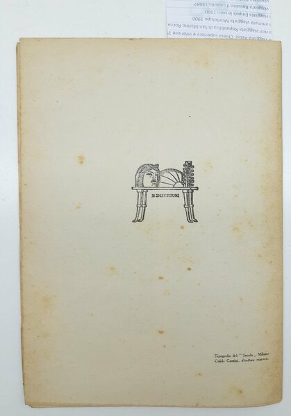legatura morbida editoriale in precarie condizioni con fioriture e bruniture diffuse ai piatti, ex libris al margine interno del piatto anteriore, tagli irregolari, a fogli chiusi, fioriture e bruniture alle pagine interne che non disturbano la lettura, numero pagine 32 dimensioni cm 21,5 x 15,5