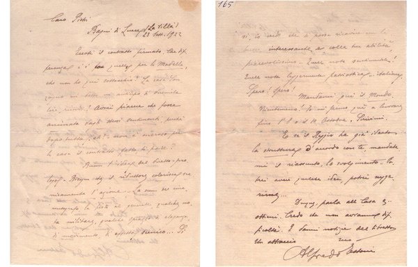 lettera manoscritta e firmata di Alfredo Testoni; lettera di 2 facciate datata Bagni di Lucca, 23 Settembre 1922 di considerazioni sullo spettacolo; buon es.