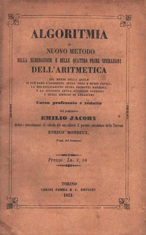 Algoritmia o nuovo metodo della numerazione e delle quattro prime operazioni dell'aritmetica.