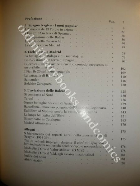 DESCRIZIONE: Mucchi Editore Modena 1986 I^ Ed., br. ed. ill. col., pp. 187 num. ill. b/n n.t. in 8°. Bella e documentata storia dell'aviazione Nazionalista e di quella Repubblicana durante la Guerra Civile Spagnola. Una storia poco nota e studiata. CONDIZIONI: Ottime. PESO / WEIGHT: 700 gr. without package