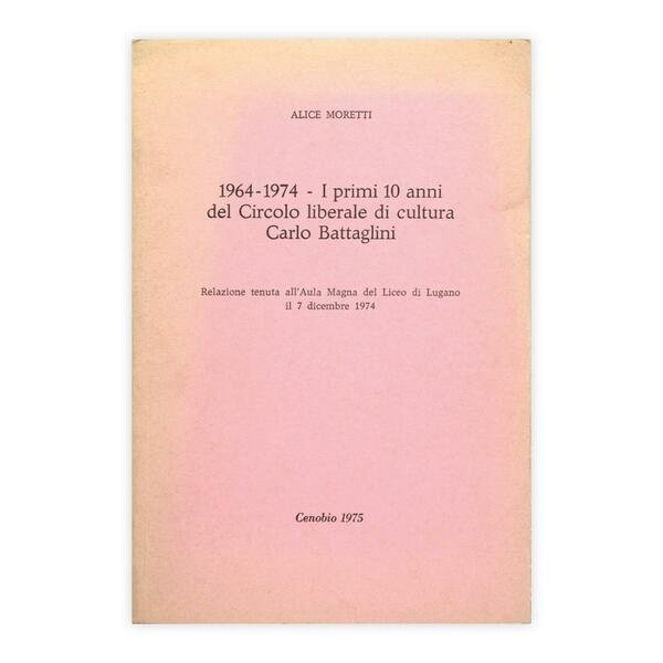 Autore: Alice Moretti Titolo: 1964-1974 I Primi 10 anni del Circolo liberale di cultura Carlo Battaglini Sottotitolo: Relazione tenuta all'Aula Magna del Liceo di Lugano il 7 dicembre 1974 Edizione: Cenobio 1975 Dimensioni: 13 x 19 cm c.a. Pagine: 19 Copertina: Brossura con alette Condizioni: Buone come da foto