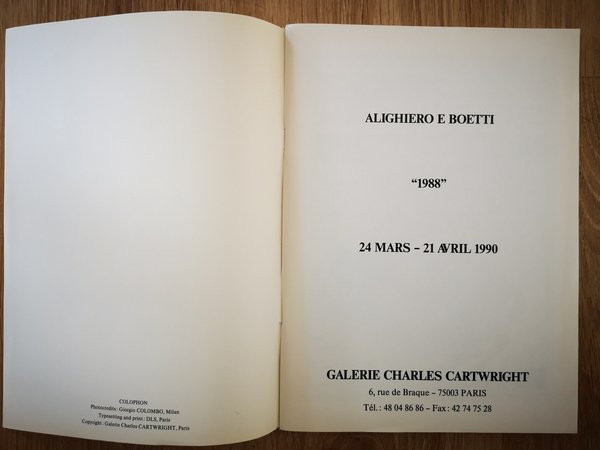 The book was the subject of tensions between Boetti and the gallery because the reproductions had not been put in chronological sequence."