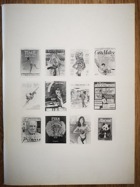 "The book reproduces the drawings on display with an obsessive layout. The drawings themselves are the pencil reproductions of the covers of some international periodicals that appeared in 1988. Twelve covers for twelve months of the year, 144 drawings.