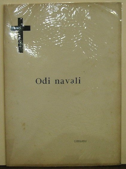 4to (cm. 36), 16 pp.nn., 1 c.nn. bianca. Copertina bianca con una croce nera in alto a sinistra. Al centro: ‘Odi Navali’. In basso a destra: F. Bideri, editore’. Sulla copertina posteriore: ‘Una Lira (per una corona di bronzo, che sarà appesa alla tomba dell’Ammiraglio in Roma nel Campo Verano)’. Ottimo esemplare a fogli chiusi. Edizione originale, molto rara. De Medici, 25; Guabello, 73-74; Vecchioni, 17a.