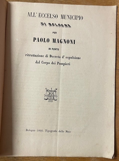 ALL'ECCELSO MUNICIPIO DI BOLOGNA PER PAOLO MAGNONI IN PUNTO RITRATTAZIONE DI DECRETO D'ESPULSIONE DAL CORPO DEI POMPIERI.