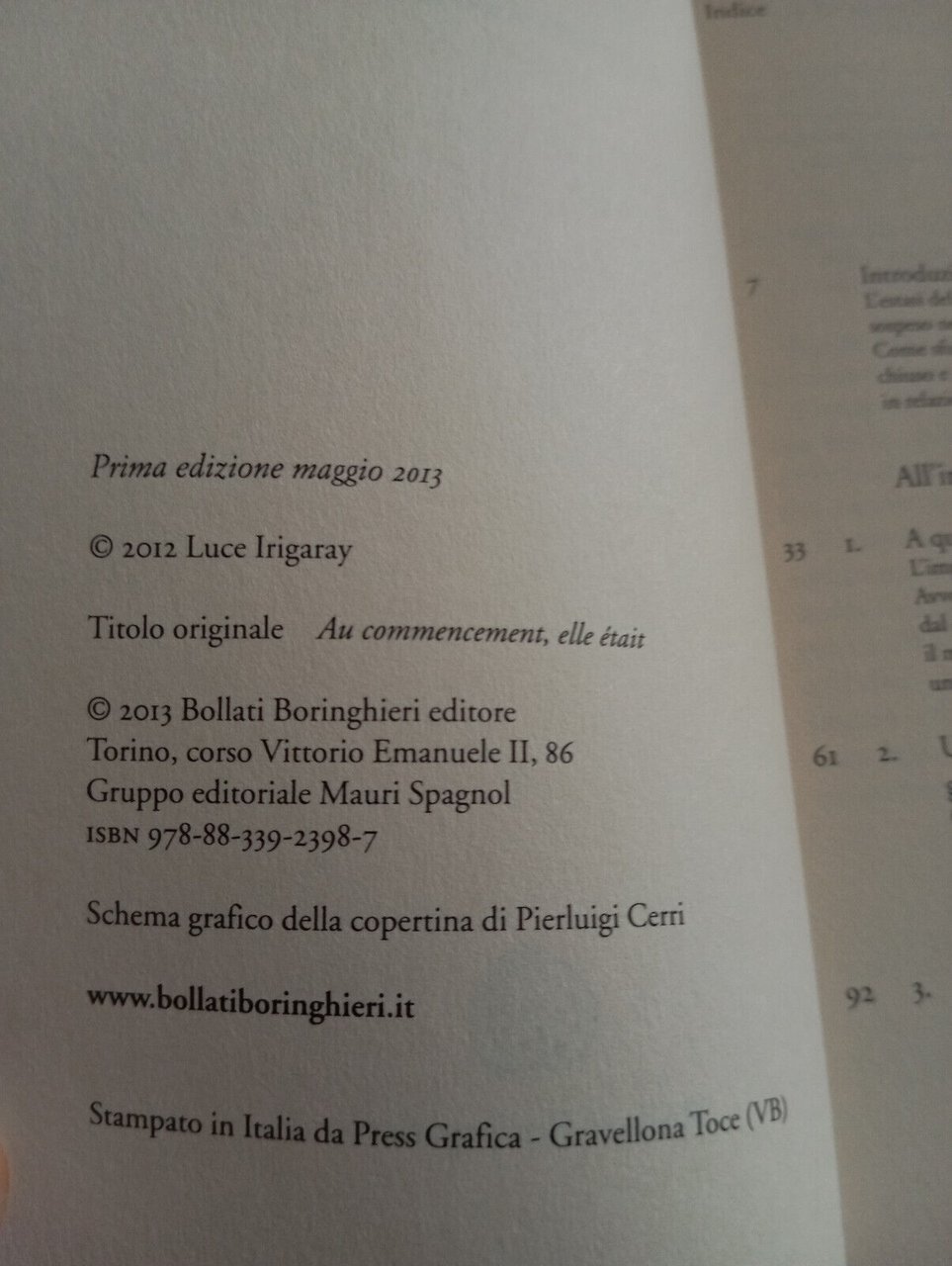 All'inizio, lei era, Luce Irigaray, Bollati Boringhieri, 2013