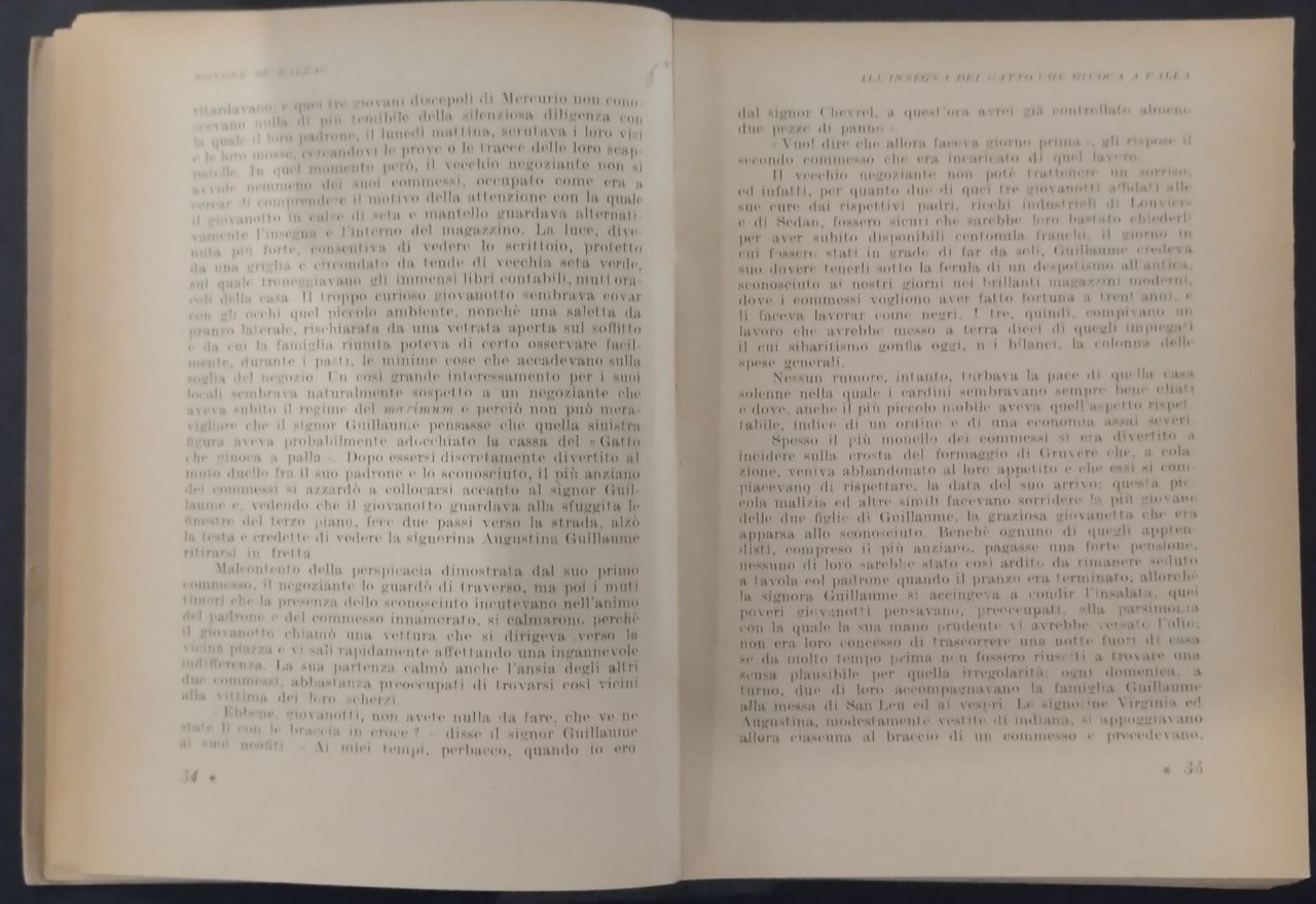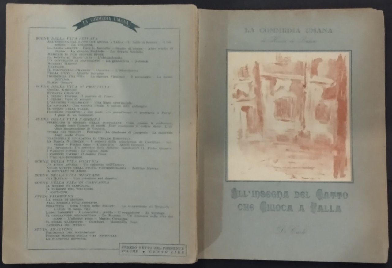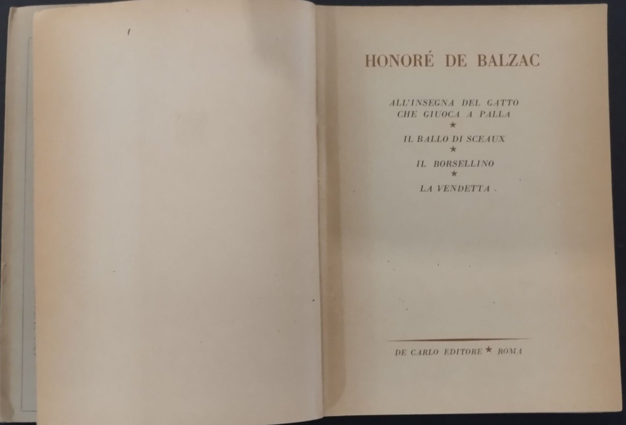 ALL'INSEGNA DEL GATTO CHE GIUOCA A PALLA di Honorè De Balzac 1944 De Carlo Libro