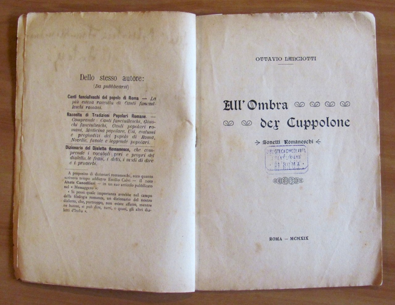ALL'OMBRA DER CUPPOLONE - Sonetti Romaneschi, 1919