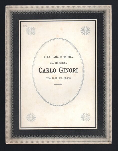 Alla cara memoria del Marchese Carlo Ginori Senatore del Regno