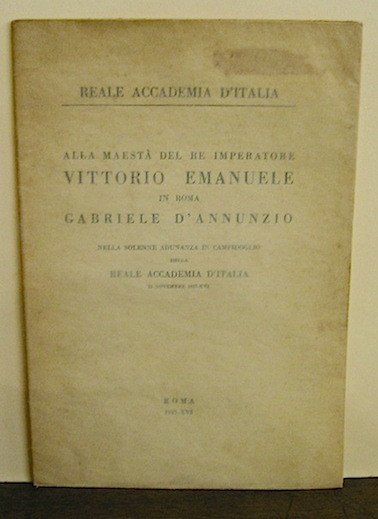 Alla Maestà del Re Imperatore Vittorio Emanuele in Roma. Nella solenne adunanza in Campidoglio della Reale Accademia d’Italia. 21 Novembre 1937-XVI