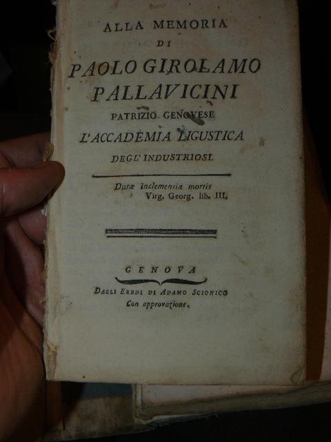 ALLA MEMORIA DI PAOLO GIROLAMO PALLAVICINI PATRIZIO GENOVESE. L'ACCADEMIA LIGUSTICA DEGL'INDUSTRIOSI