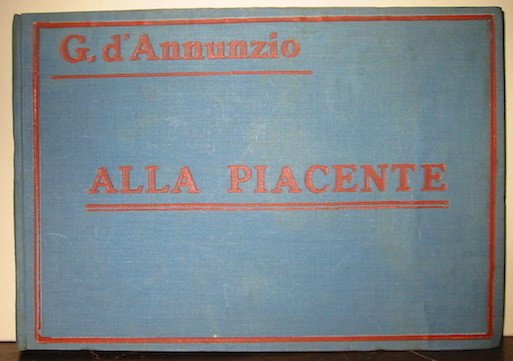 8vo oblungo (cm. 16x23), 38 cc.nn. (la prima e l’ultima bianca) in facsimile d’autografo stampato in nero ed arancione solo al recto. Tela editoriale azzurra con riquadro e titoli impressi in rosso al piatto anteriore (leggermente sbiadita). Ottimo esemplare. Contraffazione dell’edizione originale. Poemetto erotico scritto dal D’Annunzio nel 1927 ispirandosi a Elena Sangro, notissima attrice del cinema muto. Cfr. Falqui, p. 40; Vecchioni, 88a.
