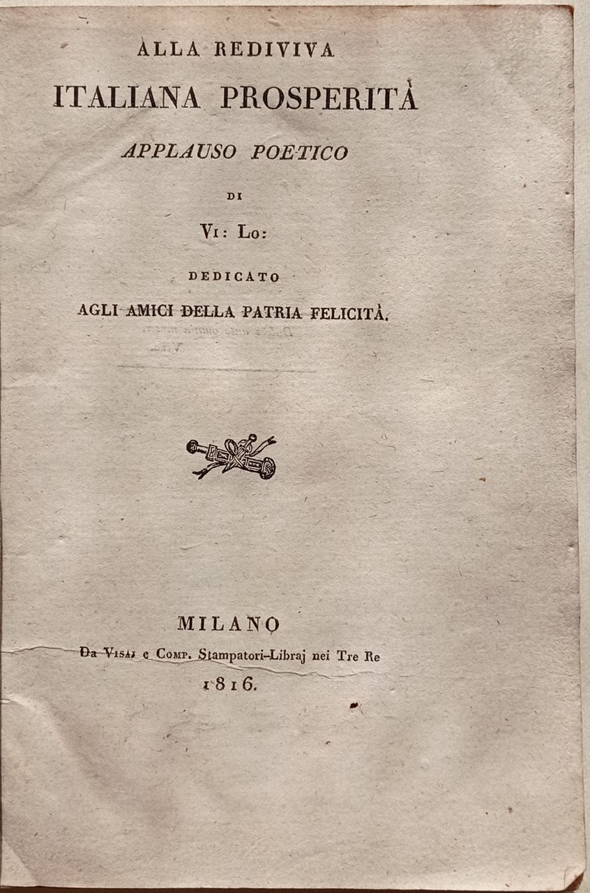 Alla rediviva italiana prosperità. Applauso poetico di Vi: Lo:.