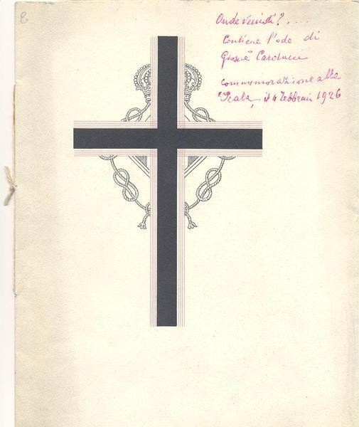 Alla Regina d'Italia. Ode di Giosuè Carducci. Nel Trigesimo della morte di Margherita di Savoia Regina d'Italia. Commemorazione alla Scala il 4 febbraio 1926.