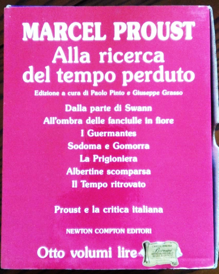 Roma, Newton Compton. 8°, 8 volumi ancora chiusi nel cellophane, astuccio editoriale. Ai 7 volumi del testo è aggiunto un volume dal titolo "Proust e la critica italiana". Minime tracce d'uso all'astuccio, bella copia.