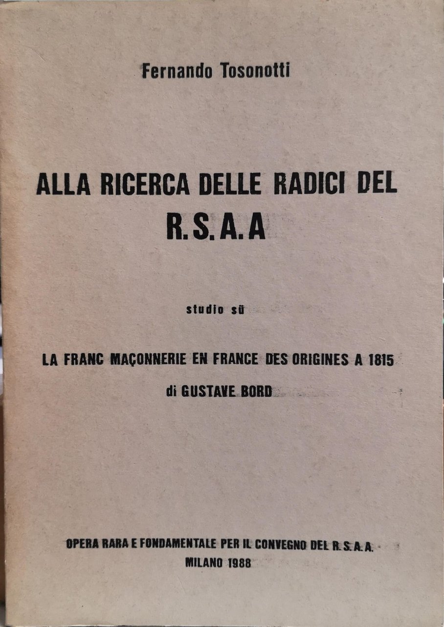 ALLA RICERCA DELLE RADICI DEL RSAA : STUDIO SU: LA FRANC MACONNERIE EN FRANCE DES ORIGINES A 1815, DI GUSTAVE BORDE.