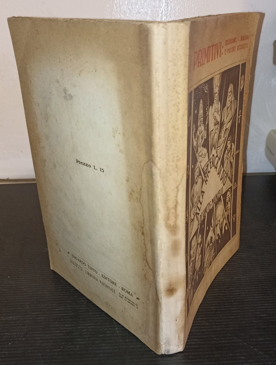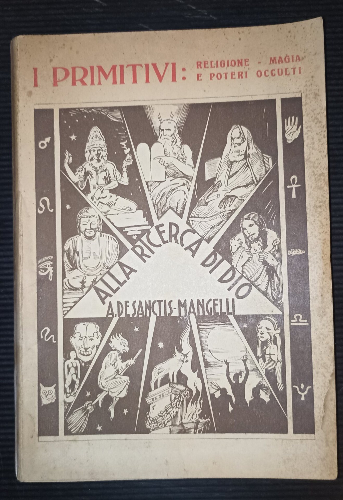 In 8, br., pp. 386; vol. I - I primitivi r: eligione - magia e poteri occulti; cop. molto brunita con gora al piatto post. e fior., segni di gora alla parte inf. delle pagine, rari segni a matita, tagli bruniti, pagine ingiallite, discrete condizioni. ***Due to bureaucratic reasons, books dated over 70 years old cannot be immediately exported, please contact us before placing the order.***