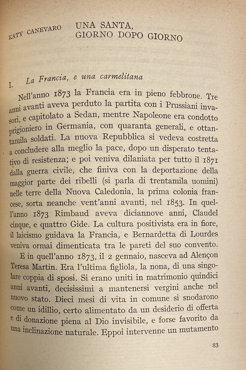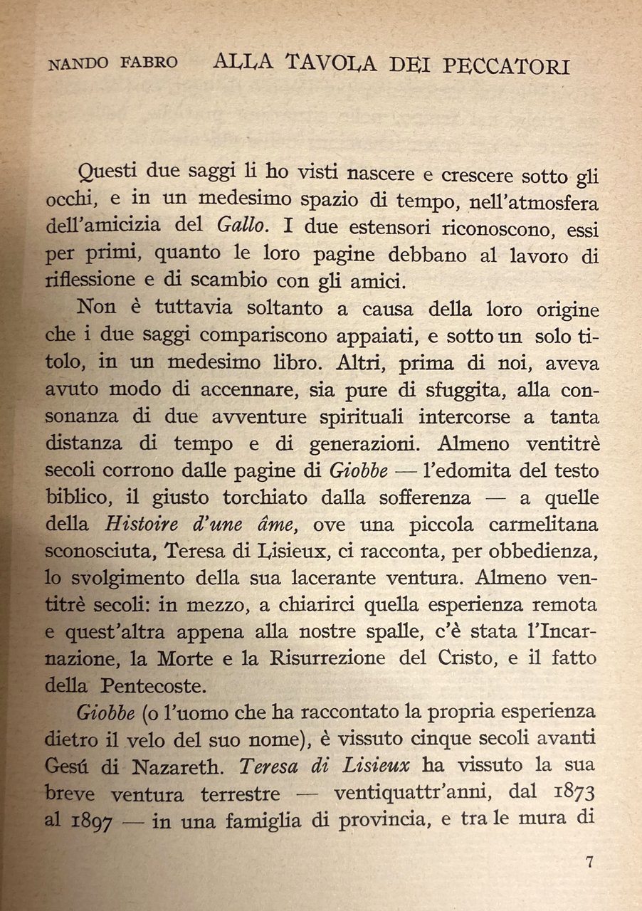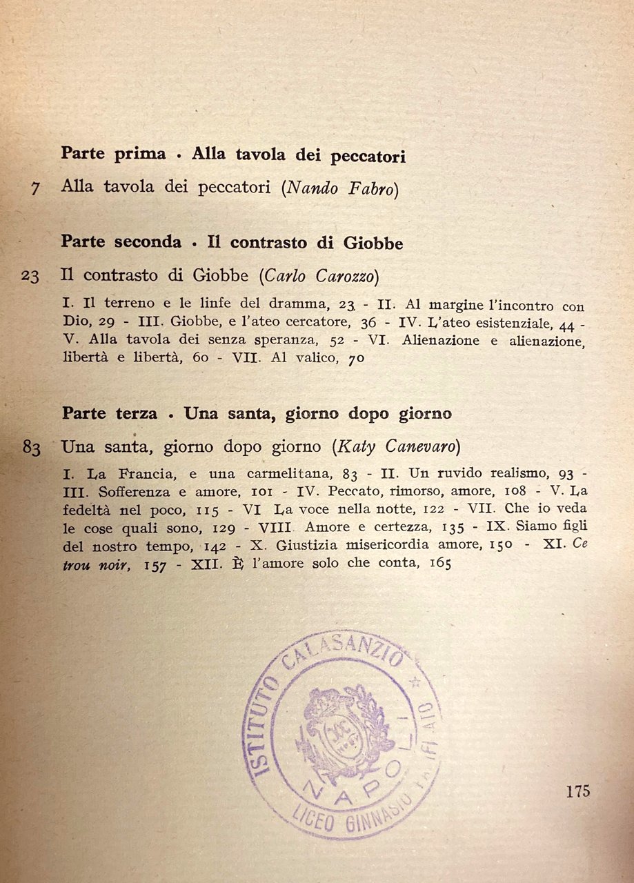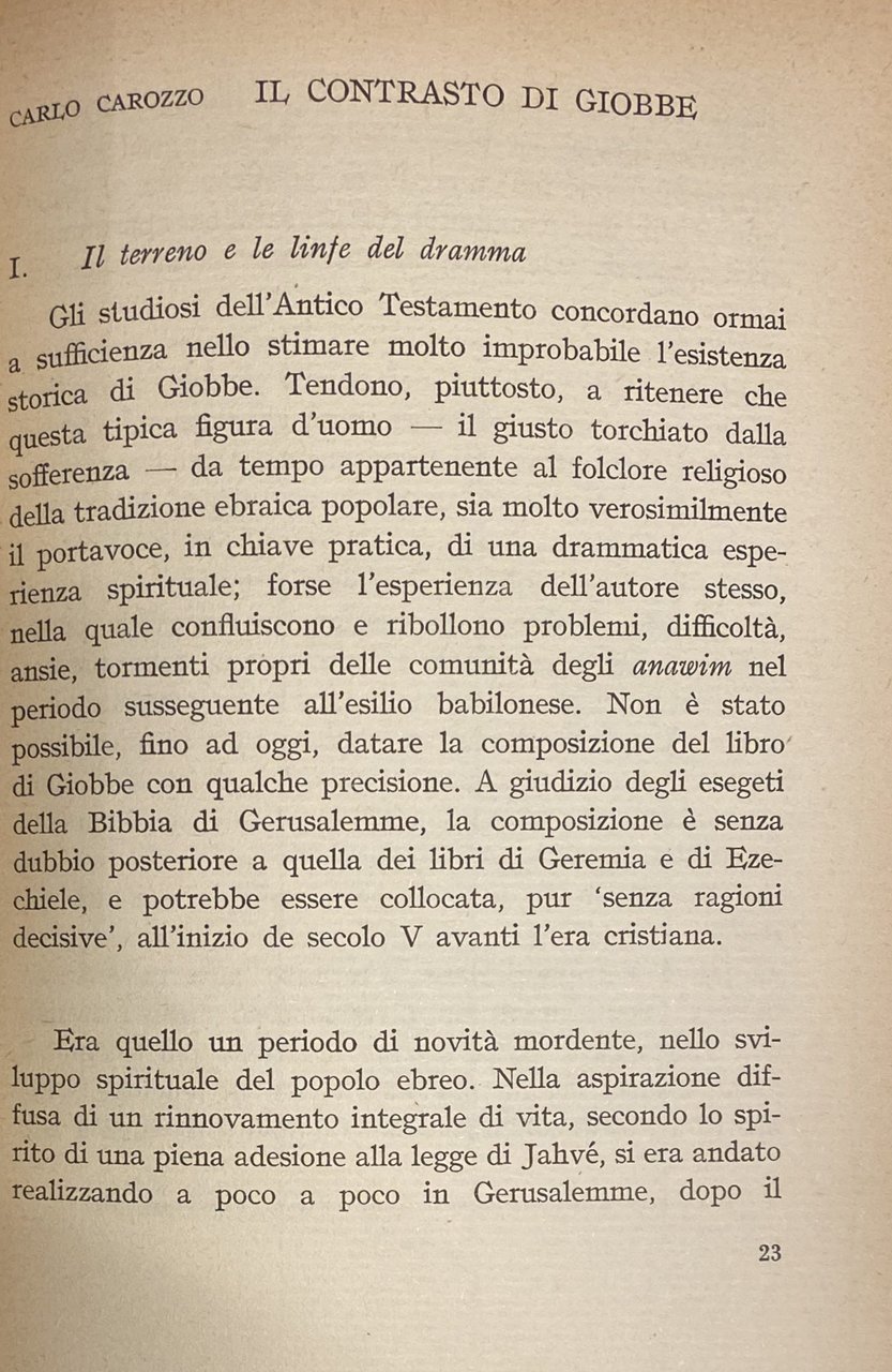 Soggetti: Religione, Teologia, Cristianesimo, Esegesi biblica, Bibbia, Antico Testamento, Giobbe, Commentari, Studi, Critica, Interpretazione, Santi, Santa Teresa d'Avila del Bambino Gesù, Peccato, Sacrificio, Linguistica, Letteratura sacra, Valori trascendentali, Morale, Etica, Vocazione, Peccatori, Ultima cena, Alienazione, Libertà, Libero arbitrio, Giusto di Dio, Amore, Altruismo, Speranza, Carmelitane, Suore, Ordini monastici, Sofferenza, Giustizia, Misericordia, Carità, Morte, Silenzio, Dolore, Obbedienza, Teilhard de Chardin, Fede, Compassione, Pazienza, Novissima Verba, Chiesa, Sofferenza, Histoire d'une ame, Risurrezione, Incarnazione, Redenzione, Pasqua, Pentecoste, Agnello sacrificale, Carne, Sangue, Tentazioni, Satana, Saggezza, Perseveranza, Benessere, Delusione, Impotenza, Indifferenza, Rivolta, Provocazione, Profeti, Flagellazione, Jahvè, Esilio babilonese, Ebraismo, Gerusalemme, Anima, Salvezza, Purificazione, Elevazione, Spiritualità, Fratelli, Caduta, Redenzione, Coscienza, Domande, Mistero, Angoscia, Marcel Moré, Prova, Ricchezza, Devozione, Beni materiali, Geremia, Ezechiele, Israele, Male, Dramma divino, Gotteskritik, Gianfranco Ravasi, Elie Wiesel, Jung, Tommaso d'Aquino, Agostino d'Ippona, Teodicea, Eucarestia, Dubbio, Conversione, Grazia, Santità, Calvario, Umiltà, Libri rari Vintage fuori catalogo, Virtù, Guy Gaucher, Louis Martin, Marie-Azélie Guérin Martin, Imitazione di Cristo, Ruysbroeck, Jan van Ruusbroec, Jean Maritain, Getsemani, Étienne Borne, Lettres, Biografie comparate, Ebraismo, Marxismo, Mistero, Storia di un'anima, Quand'anche egli mi uccidesse io continuerò a credere in lui, Elisabetta di Digione, Pranzini, Carmelo, Martirio, Misericordia, Benessere, Religion, Theology, Christianity, Biblical exegesis, Bible, Old Testament, Job, Commentaries, Studies, Criticism, Interpretation, Saints, Saint Teresa of Avila of the Child Jesus, Sin, Sacrifice, Linguistics, Sacred literature, Transcendental values, Ethics, Vocation, Sinners, Last Supper, Alienation, Freedom, Free will, Righteous of God, Love, Altruism, Hope, Carmelites, Nuns, Monastic Orders, Suffering, Justice, Mercy, Charity, Death, Silence, Pain, Obedience, Faith, Compassion, Patience, Novissima Verba, Church, Suffering, Resurrection, Incarnation, Redemption, Easter, Pentecost, Sacrificial Lamb, Flesh, Blood, Temptations, Satan, Wisdom, Perseverance, Well-being, Disappointment, Impotence, Indifference, Revolt, Provocation, Prophets, Flagellation, Babylonian exile, Judaism, Jerusalem, Soul, Salvation, Purification, Elevation, Spirituality, Brothers, Fall, Redemption, Conscience, Questions, Mystery, Anguish, Trial, Wealth, Devotion, Material goods, Jeremiah, Ezekiel, Israel, Evil, Divine drama, Thomas Aquinas, Augustine of Hippo, Theodicy, Eucharist, Doubt, Conversion, Grace, Holiness, Calvary, Humility, Rare books out of print, Virtue, Imitation of Christ, Gethsemane, Comparative biographies, Judaism, Mystery, Story of a soul, Even if he kills me I will continue to believe in him, Elizabeth of Dijon, Martyrdom, Mercy, Well-being