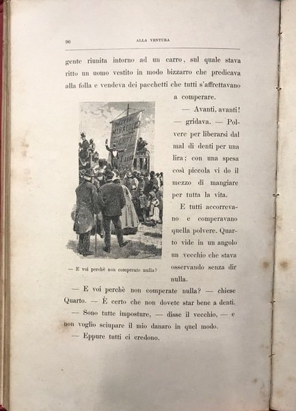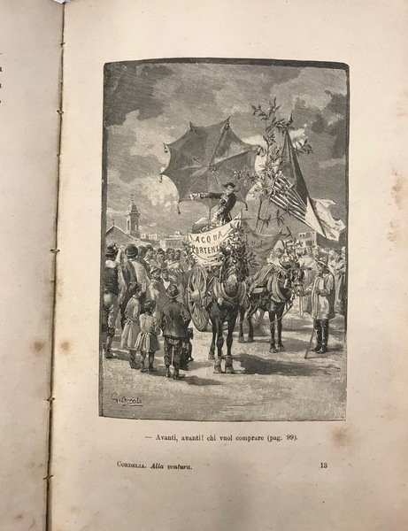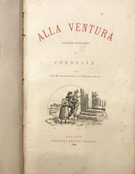 Bella legatura originale in percallina rossa, con titolo e fregi oro al dorso e al piatto, con 90 illustrazioni bn di Gennaro Amato, pp 169. Edizione di pregio di questo romanzo fantastico per ragazzi di Cordelia, pseudonimo di Virginia Tedeschi Treves (1849 - 1916), moglie dell'editore Emilio Treves. Dedica di anonimo sulla prima pagina, qualche lieve brunitura sulle pagine, tipiche delle edizioni fine '800