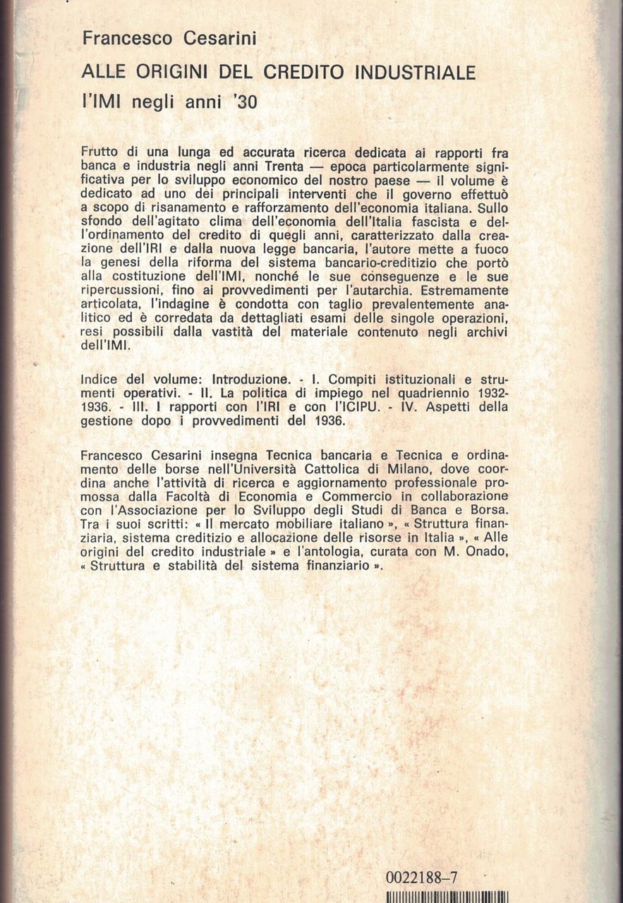 Alle origini del credito industriale. L'IMI negli anni Trenta