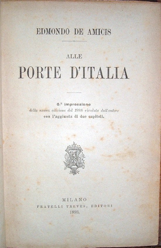 Alle porte d'Italia. 6.a impressione della nuova edizione del 1888 riveduta dall'autore con l'aggiunta di due capitoli