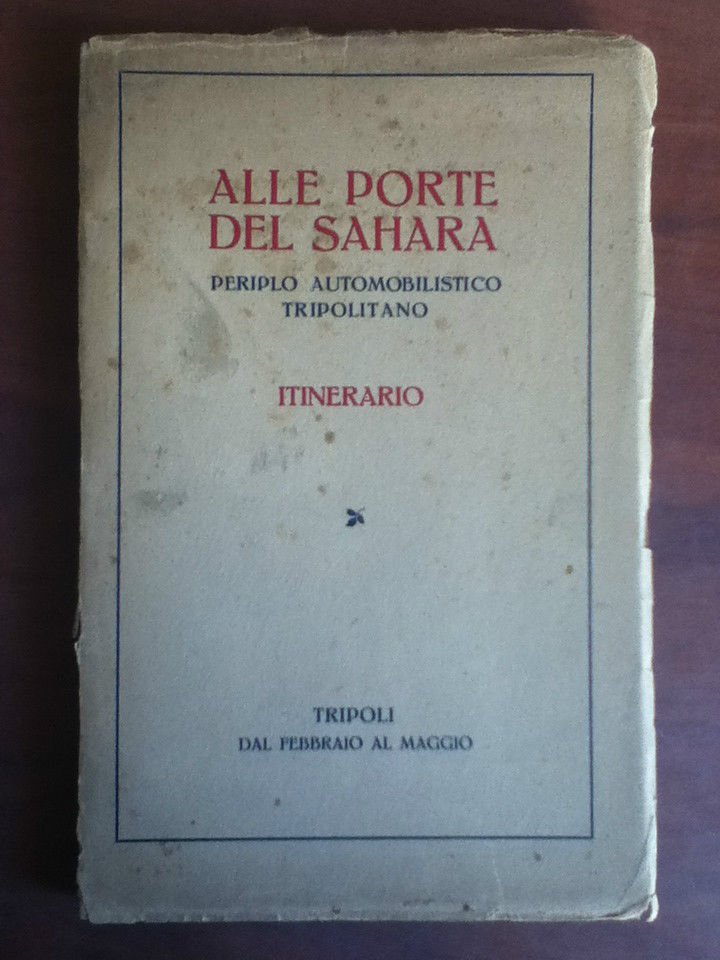 ALLE PORTE DEL SAHARAPERIPLO AUTOMOBILISTICO TRIPOLITANOITINERARIOTripoli dal Febbraio al Maggio50 pagine immagini b/n - formato 13,5x20,5 cmin buono stato salvo copertina e dorso parzialmente danneggiati come da foto (170 g)E20159