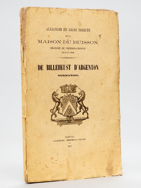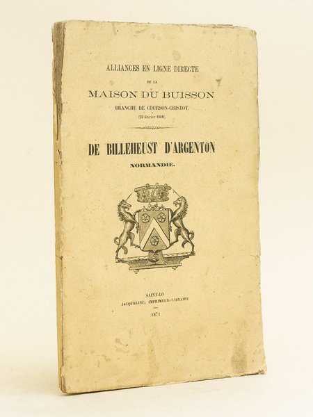 Alliances en ligne directe de la Maison du Buisson branche de Courson-Cristot (23 février 1808). De Billeheust d'Argenton. [ Edition originale ]