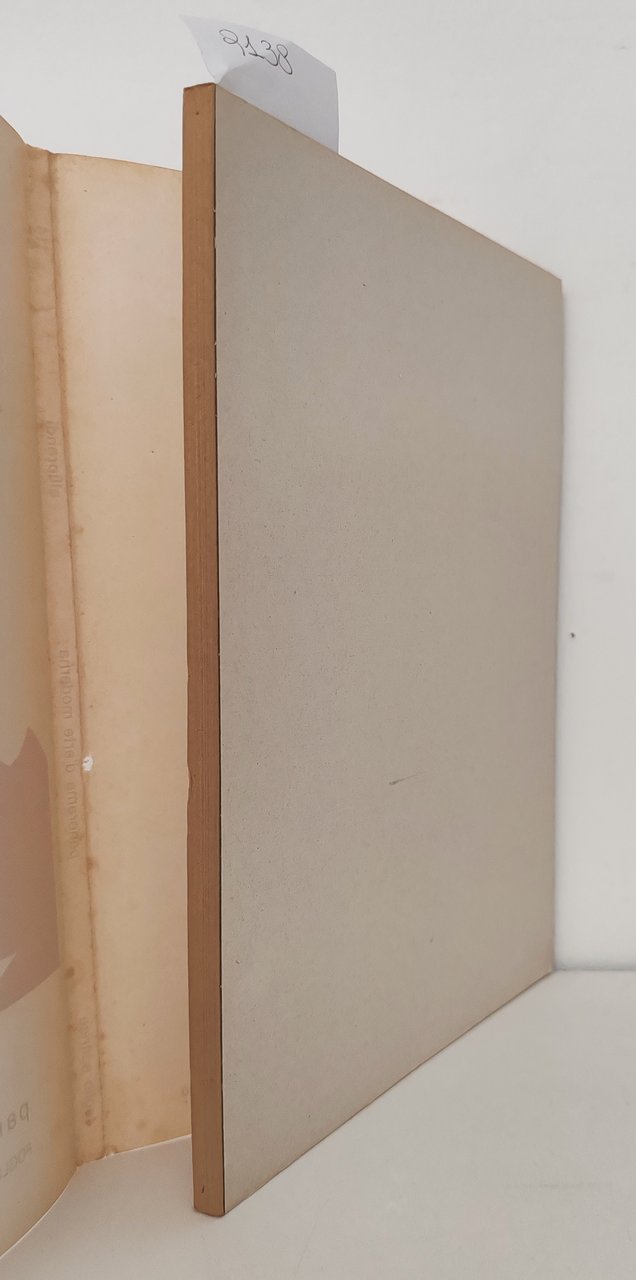 Sovraccoperta editoriale con bruniture e aloni ai margini dei piatti e del dorso legatura rigida cartonata muta con dorso in tela color marrone, tagli leggermente bruniti, fogli di guardia colorati, esemplari numero 169 di 600 dimensioni cm 23 x 16,8