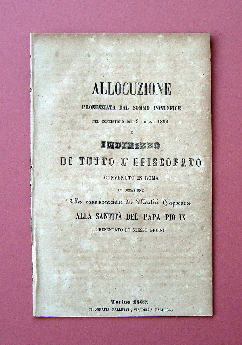 Allocuzione Sommo Pontefice Canonizzazione Martiri Giapponesi 1862 Torino