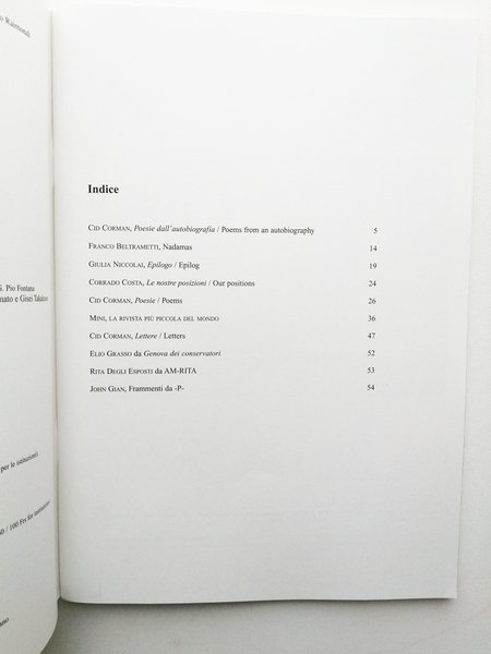 formato 29,5X21 pagine 57. Brossura editoriale. Rivista di Poesia Visiva con contributi di Cid Corman - Giulia Niccolai - Corrado Costa - Elio Grasso - Franco Beltrametti. Con molte fotografie e disegni in B/N. Bella copia