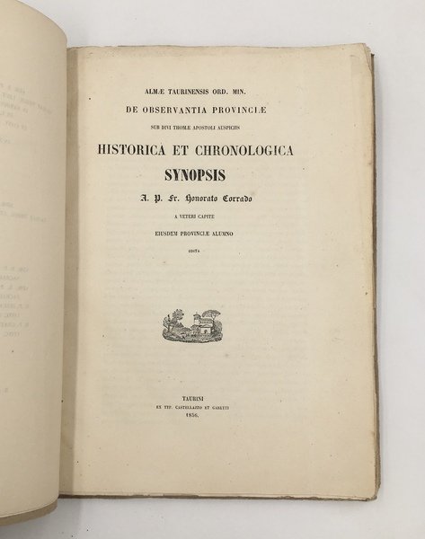 Almae taurinensis ORD. MIN. de OBSERVANTIA Provinciae sub divi Thomae Apostoli auspiciis HISTORICA et CHRONOLOGICA SYNOPSIS. [Storia dei MINORI FRANCESCANI nella Provincia di TORINO e di 40 Conventi e 2 Ospizi]