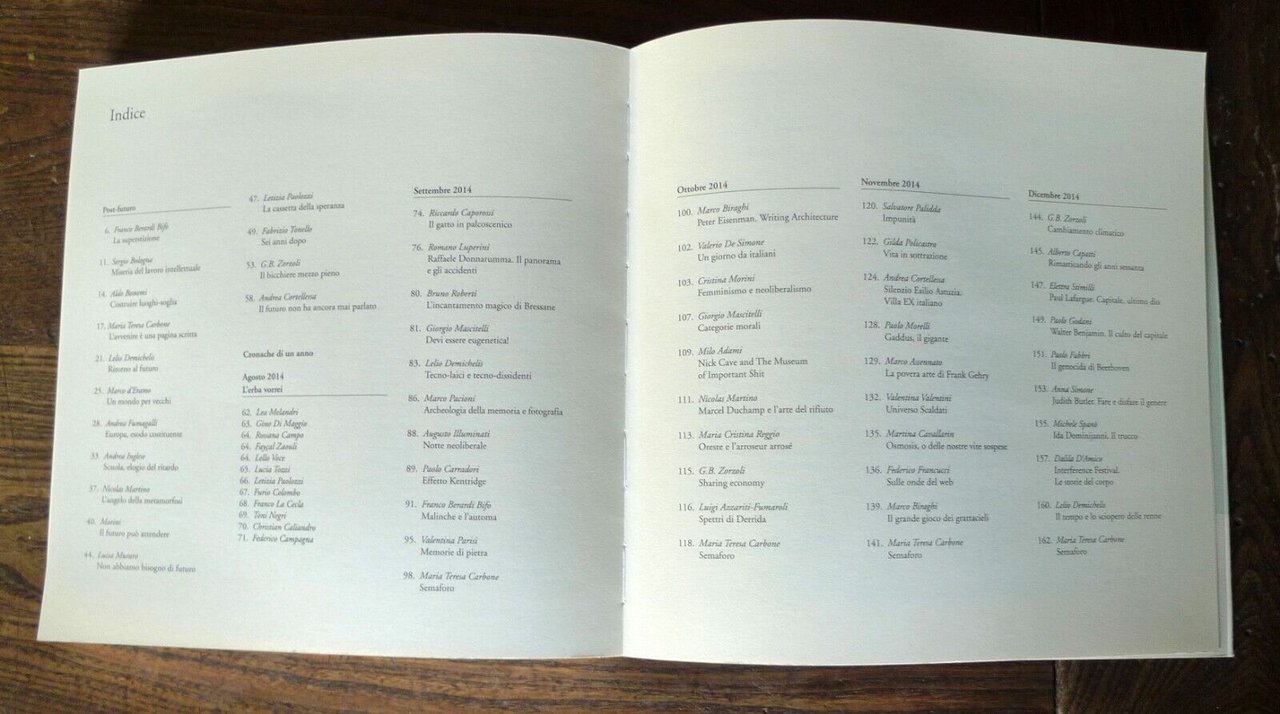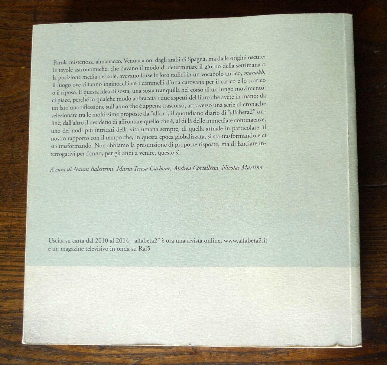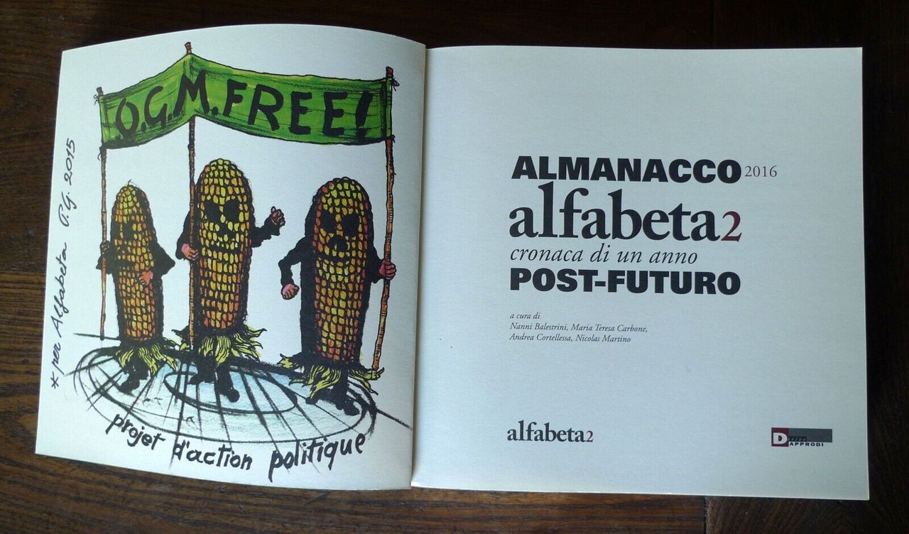A cura di Nanni Balestrini, Maria Teresa Carbone,Andrea Cortellessa, Nicolas Martino,ALMANACCO 2016.ALFABETA2CRONACA DI UN ANNO POST-FUTURO.Alfabeta Edizioni/DeriveApprodi, Milano 2015,brossura, 21x21 cm., pp.325,illustrazioni a colori,ISBN: 978-88-6548-143-1,peso: kg.1
