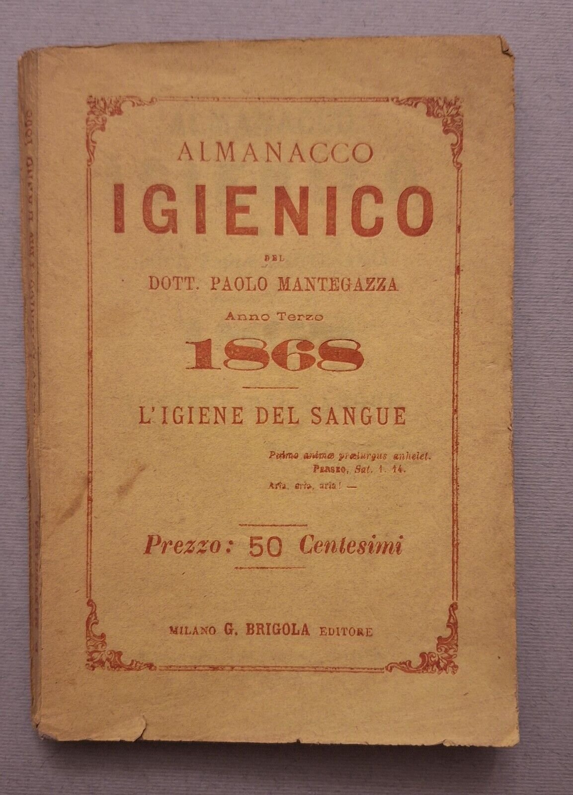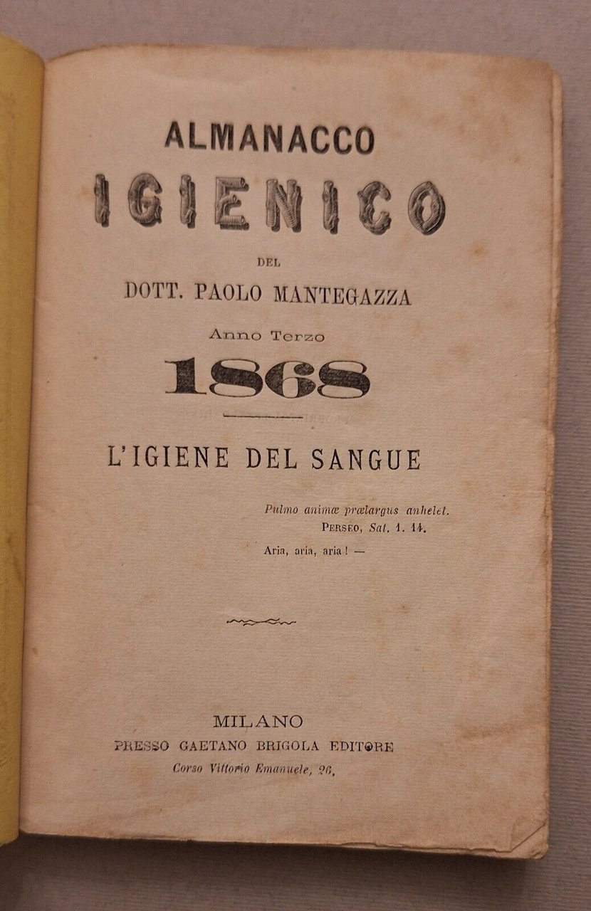 ALMANACCO IGIENICO DEL DOT. PAOLO MANTEGAZZA 1868 MILANO G. BRIGOLA ED.