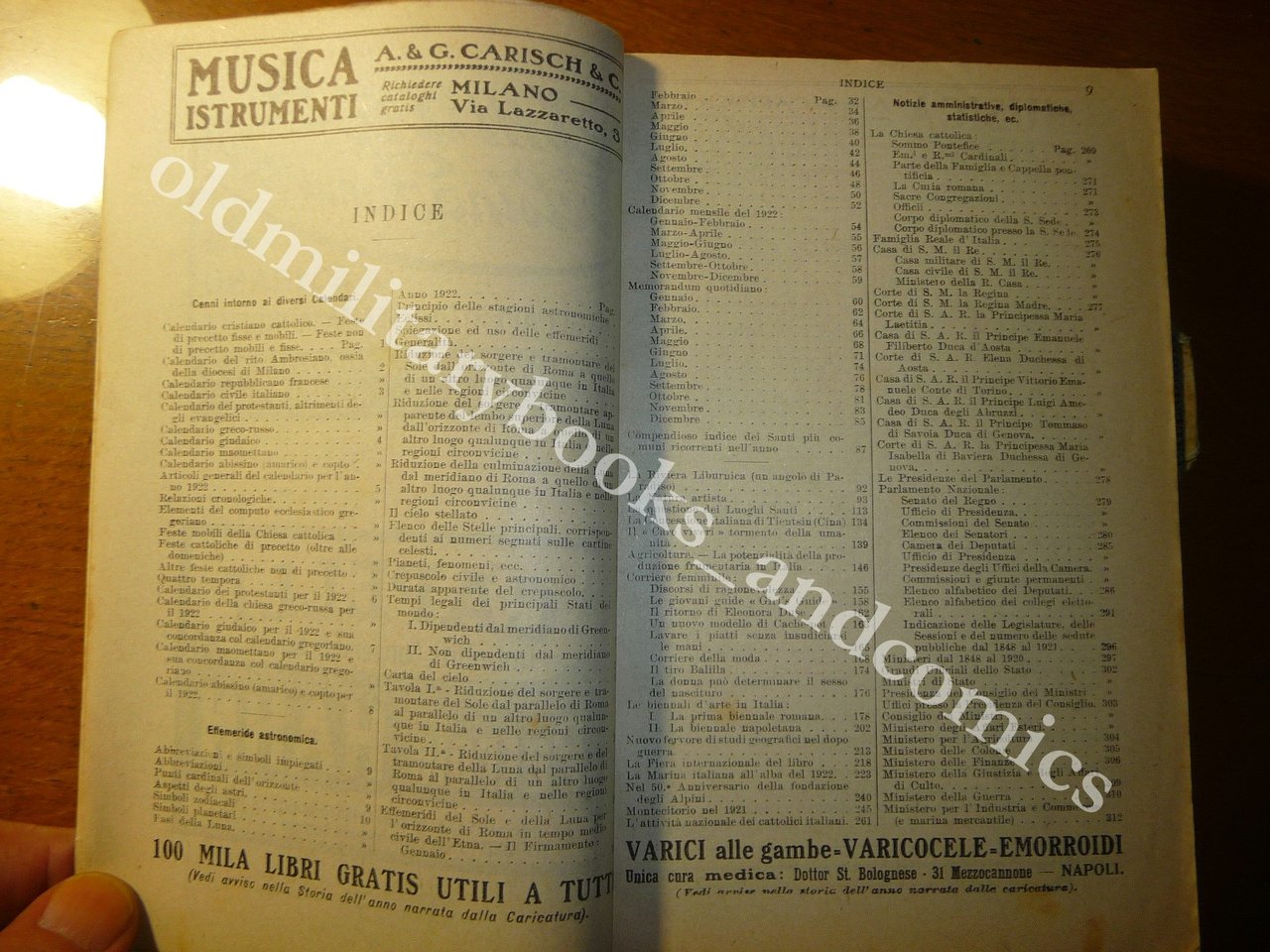ALMANACCO ITALIANO 1922 BEMPORAD PICCOLA ENCICLOPEDIA POPOLARE