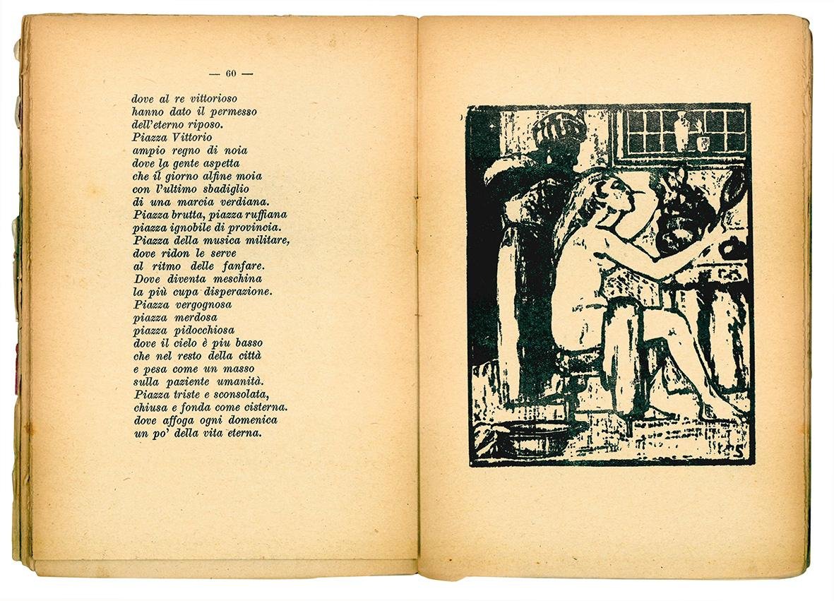 In 16mo (mm 195x132); pp. 148, [12], con nove xilografie di Ardengo Soffici a piena pagina nel testo. Le ultime sei carte (non numerate) contengono inserti pubblicitari editoriali e di mostre d'arte legate al movimento futurista fiorentino. Carta uniformemente brunita. Brossura editoriale con copertina anteriore rosa e verde. Alla copertina anteriore è riportato il testo "Mi eul xest der isqu edel arme ses cripre", originale trascrizione del verso: "Mieulx est de ris que de larmes escripre, Pour ce que rire est le propre de l'homme", dal Gargantua di François Rabelais. Dorso mancante, piccole mancanze marginali.