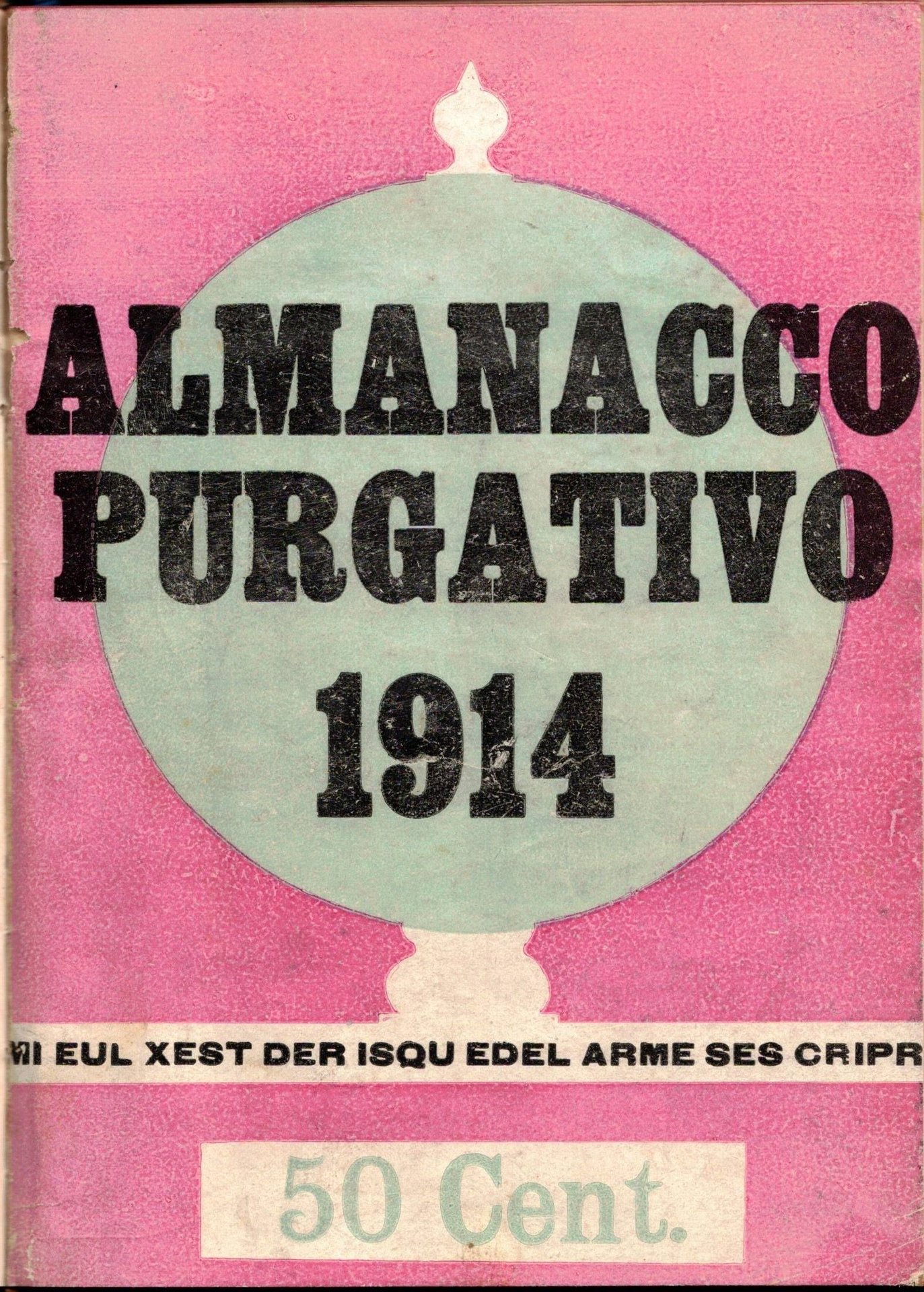 In-16 gr. (mm. 186x131), mz. pelle coeva (abrasioni), titolo oro su tassello al dorso (con lievi manc.), conservata la rara brossura originale verde e rosa, pp. 148,(12), con 9 tavole silografiche di Soffici, a piena pagina nel testo. "Edizione originale".Contiene un calendario ripartito per settimane, corredato da maltusiani domenicali, strofette in rima satiriche e altri testi non firmati. Pagine leggermente ingiallite per la qualità della carta, peraltro esemplare ben conservato.