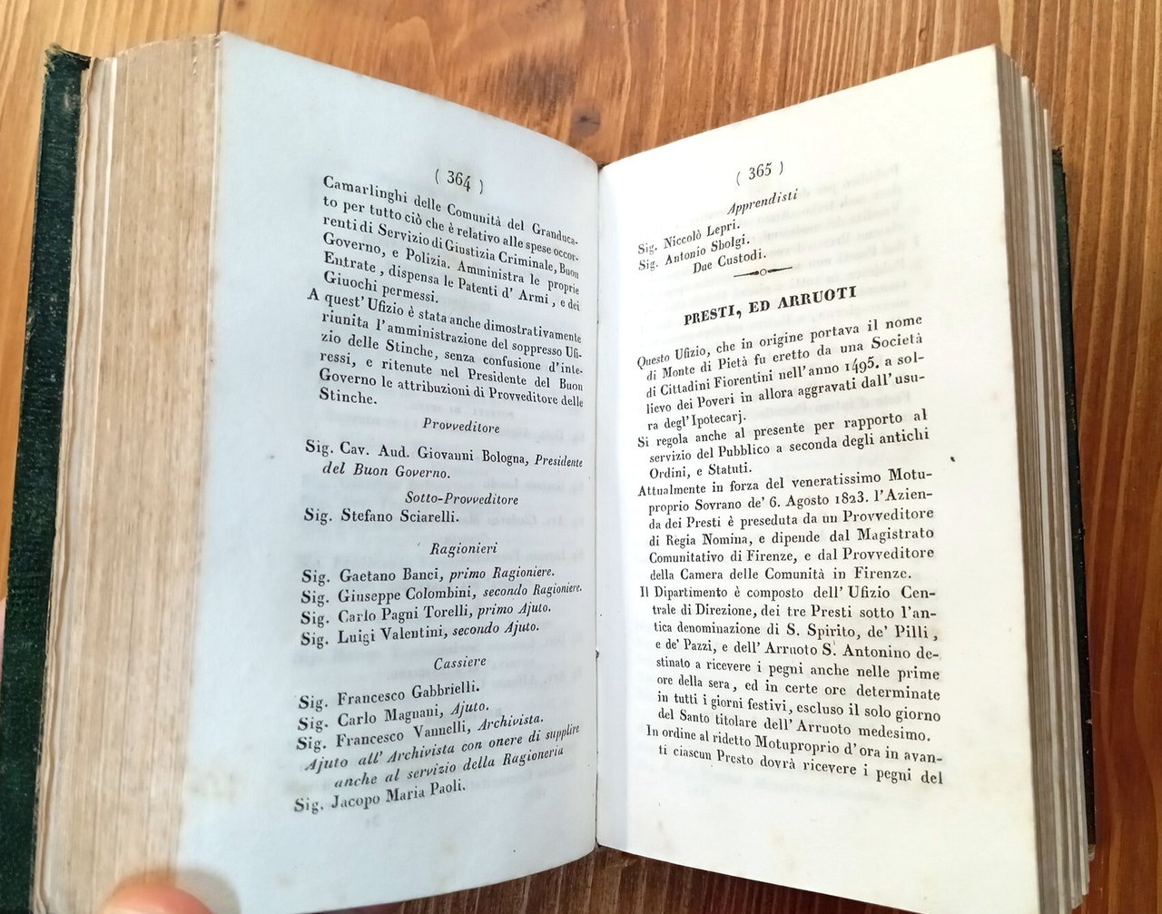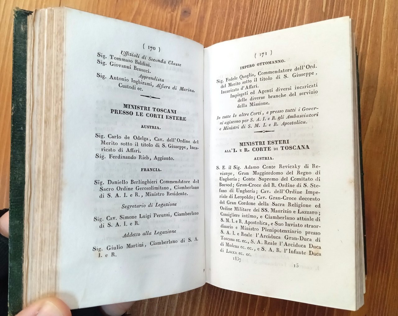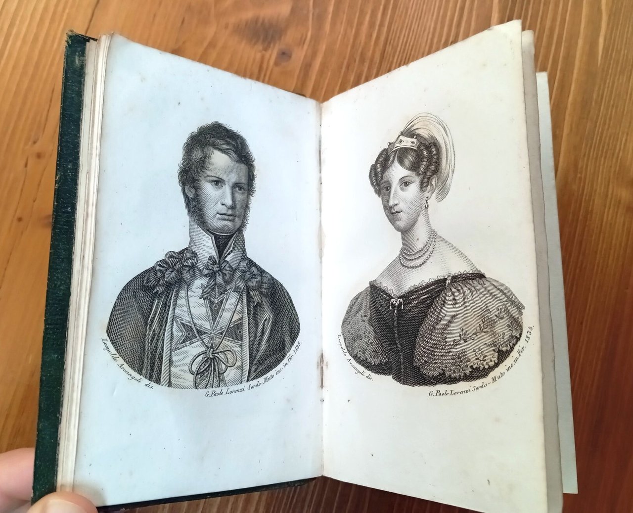Edizione originale - Volume in formato tascabile (10x15 cm) rilegato in pelle verde con titolo e fregi oro al dorso, tagli dipinti in oro, 564 pagine. Stemma ducale al frontespizio; all'antiporta due ritratti incisi dei granduchi Leopoldo II e sua moglie. In chiusura, indice generale in ordine alfabetico. Piccola mancanza al piede del dorso, peraltro esemplare integro e decisamente ben conservato di una rara pubblicazione dell'Ottocento.